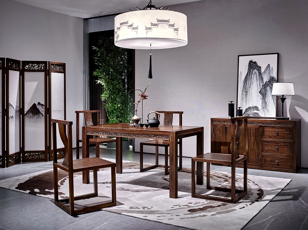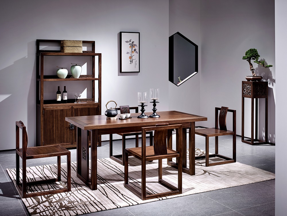 充满宋式情趣的艺术手法,刻画出干净凝练的家具线条,一曲一直之间融合回纹、格窗、玉玦等经典元素,将中式意境极致勾画。同时遵循人体工程学,使形器比例合理,尺度有序,展现原木的自然韵律,彰显内敛、天真、清雅、智慧的东方品位。
